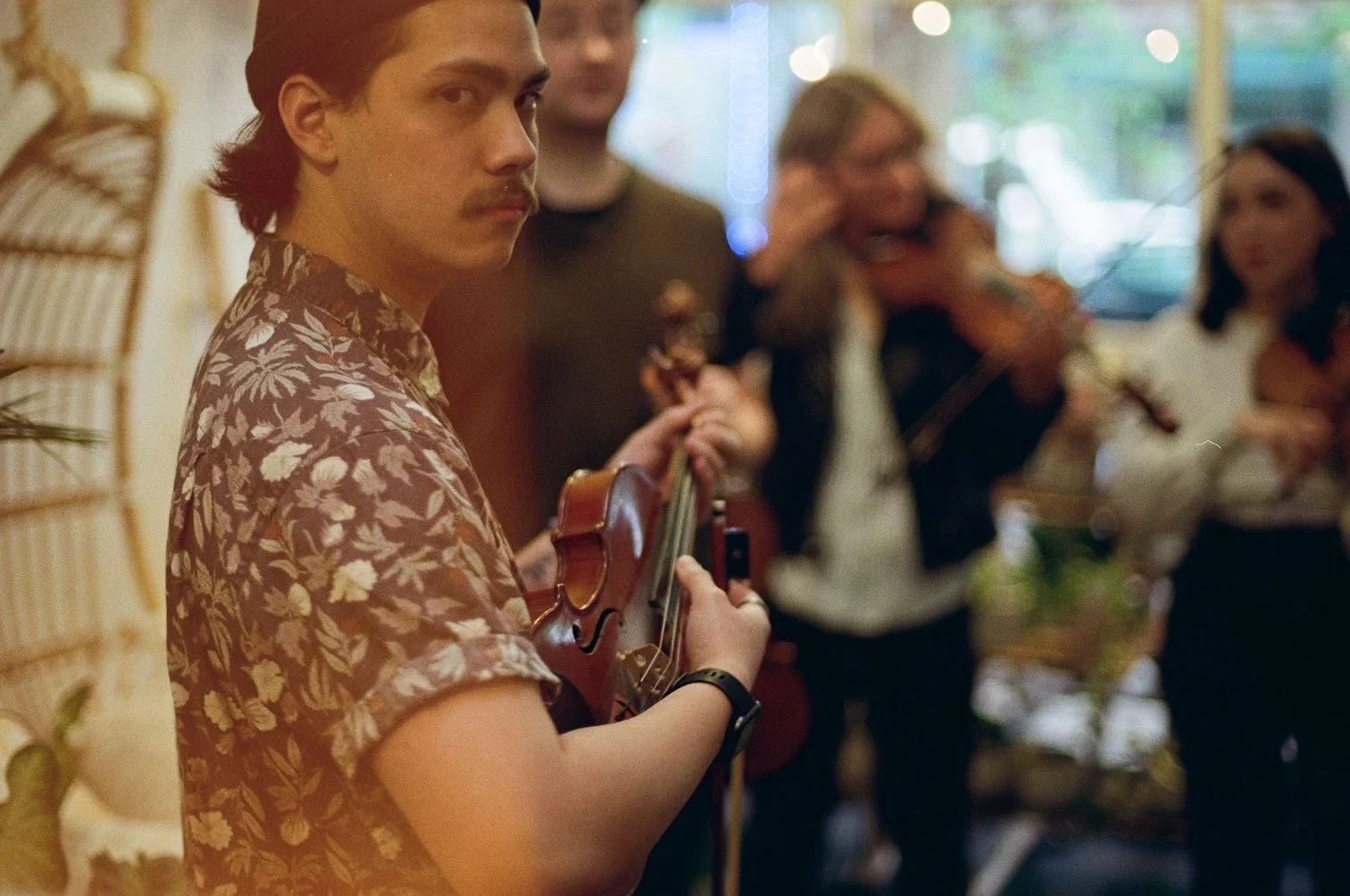 Currently, Kai is an active performer across the Lower Mainland, engaging in diverse projects. He is experienced in performing at weddings, serving as a backup fiddler, and is proficient in various musical styles.